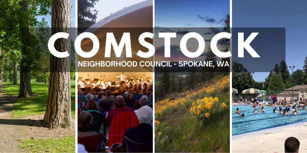 Comstock Neighborhood Council meets the 3rd Wednesday of each month from 6 – 7:30 pm, Manito United Methodist Church at 3220 S. Grand Blvd (parking and entrance is located on E 32nd Ave).